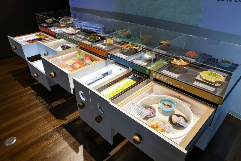 地元青森の豊かな自然や人々の営みを取材したテーマムービー「津軽の記憶」を視聴できるシアタールームや、津軽ならではの四季折々の食材や料理に触れることができる展示コーナーが設けられています。