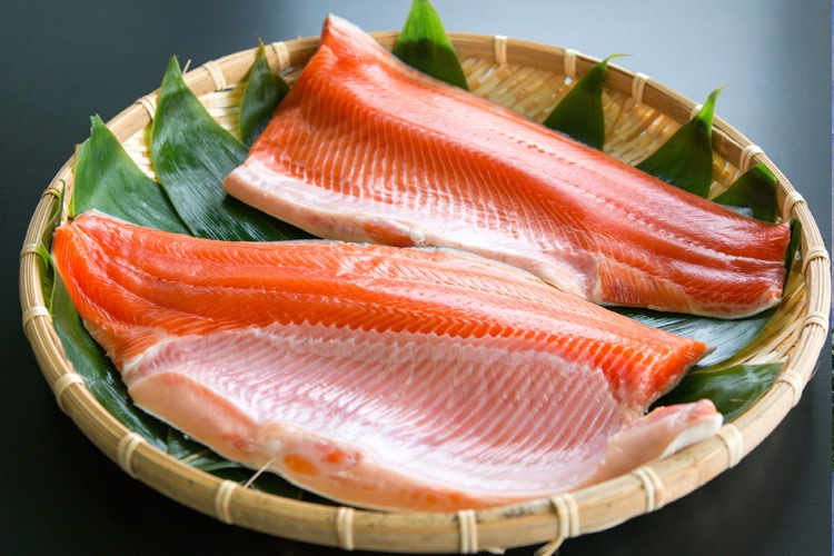 海峡サーモンは、青森県が誇る養殖のサーモンです。淡水で育てた後、沖合約2㎞、水深約23mの場所に生簀(いけす)を移し、津軽海峡の荒波の中で育てます。水揚げ直後に処理をするため、新鮮で、臭みがありません。プリプリとした食感、とろけるような舌触りと上品な甘みが自慢です。まずはぜひ、刺身でどうぞ!もちろん、ムニエルやあら汁など、調理してもおいしくいただけます。