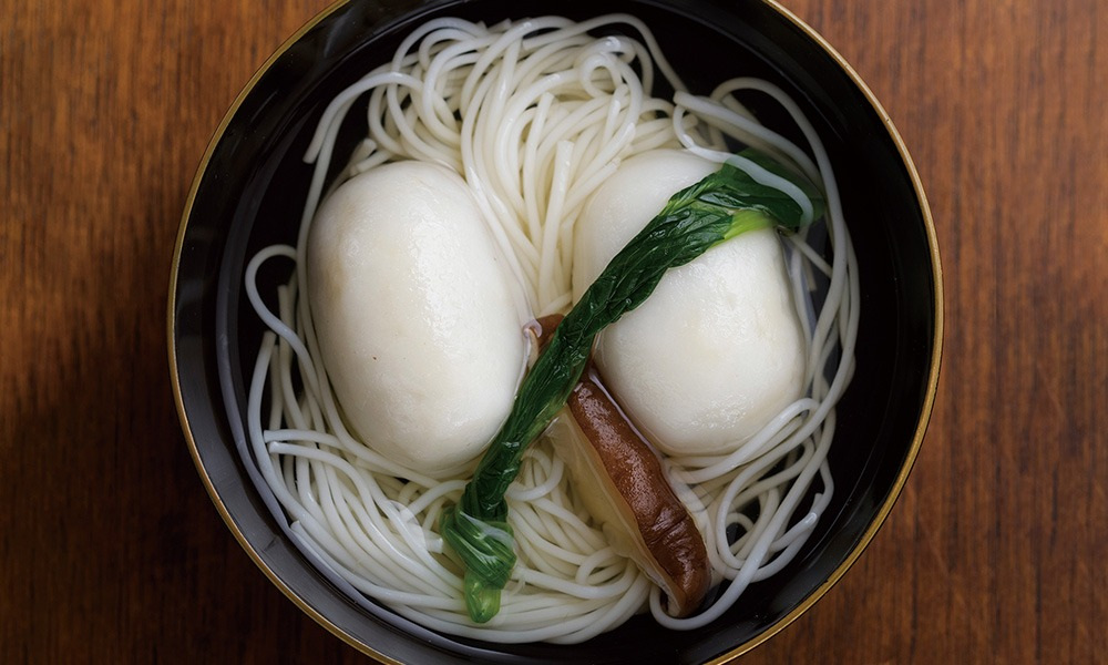 冷たいすまし汁に餡子を包んだ熱い餅を入れていただきます。甘みと塩気が一度に押し寄せてくるのではじめは戸惑うかもしれませんが、食べれば食べるほど、調和のとれた味に感じるようになります。秋の終わり頃に自分や大切な人を「けいらん」で労ってみてはいかがでしょうか。
